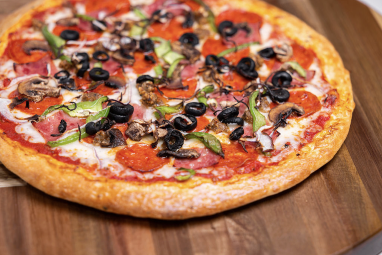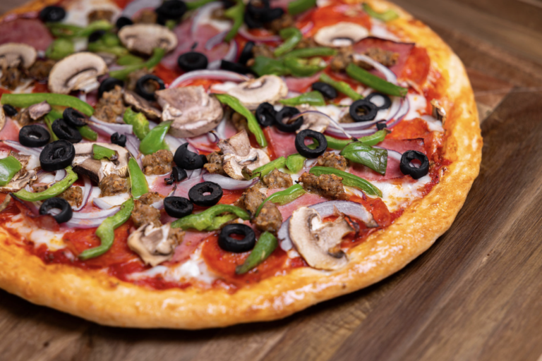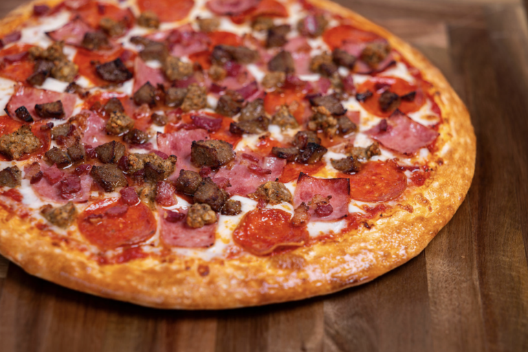 Our kitchen starts with fresh dough, our signature tomato sauce, and plenty of melted cheese, but what truly makes our pizzas special is how we don’t hold back on toppings. One of the best examples is our All Meat Pizza, loaded with pepperoni, sausage, ham, bacon, and meatballs — a pizza made for people who want bold flavor in every bite.