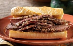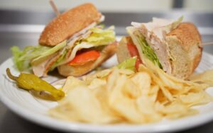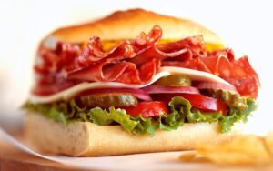 Turkey roast beef, ham, and cheese. With mustard , mayo, lettuce, tomatoes, pickles, onions and cheese.