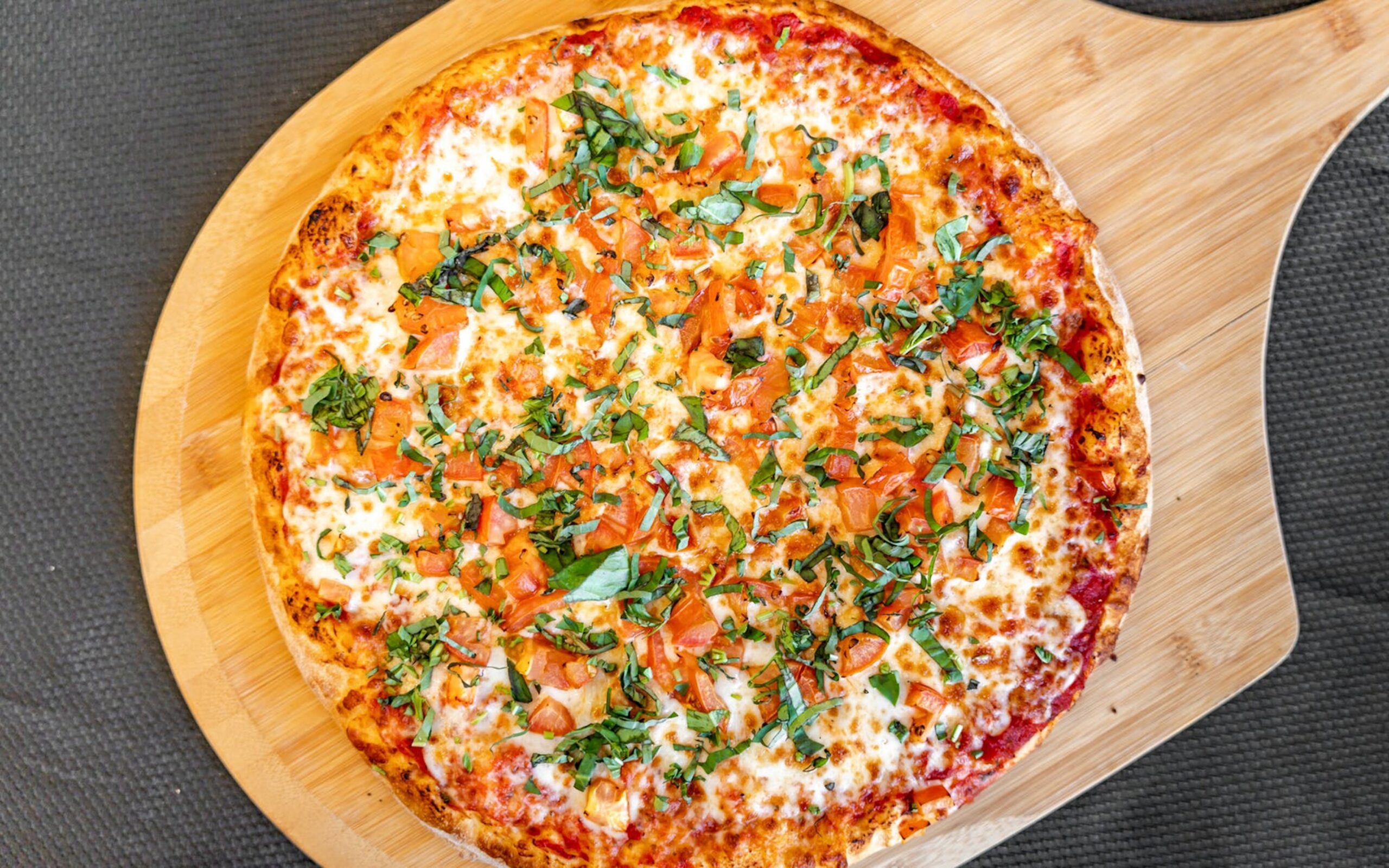 Mozzarella cheese, Tomatoes, Fresh basil.