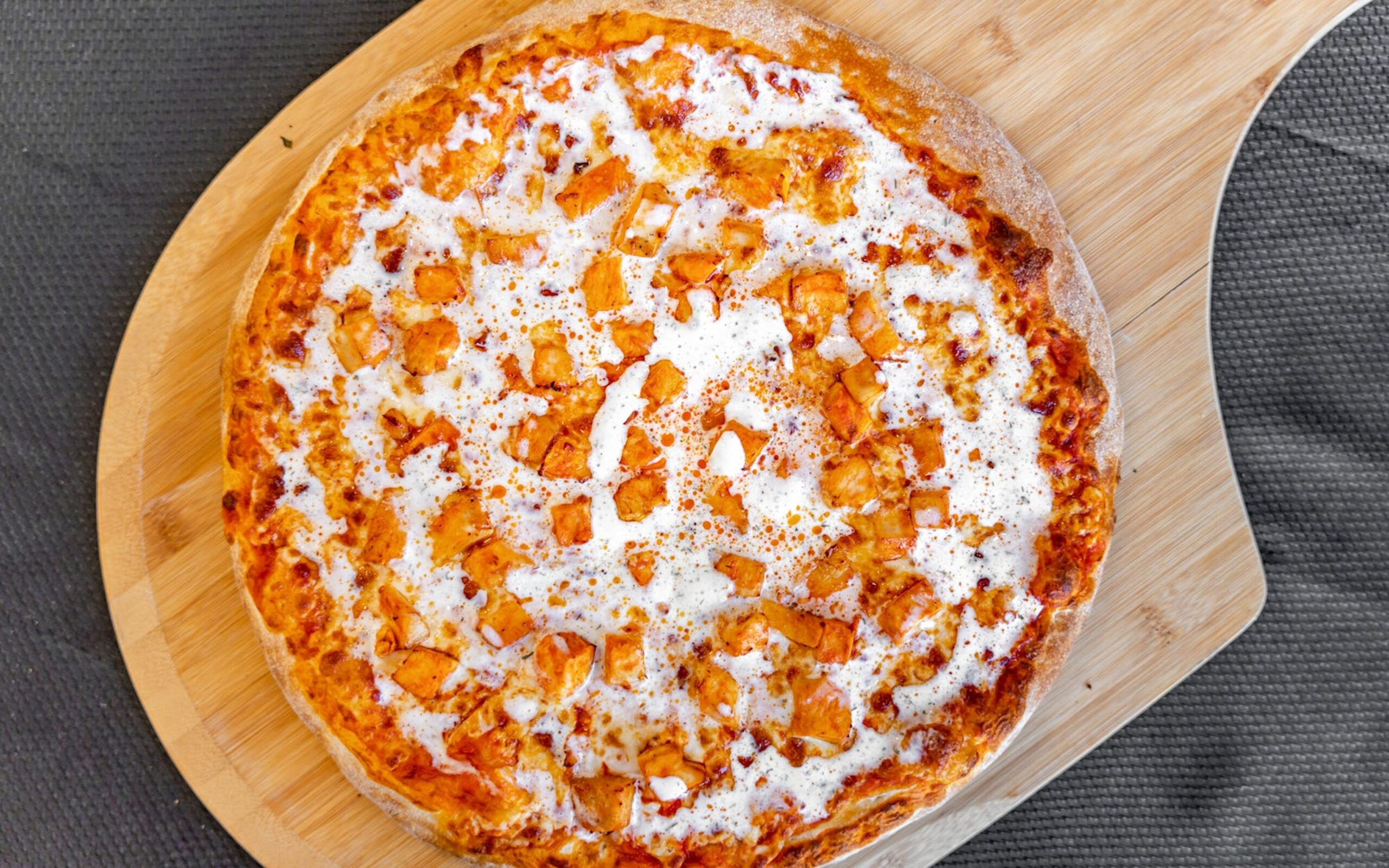 Buffalo Sauce, Spicy Vegan Chicken drizzled with Vegan Ranch